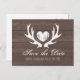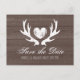 Rustic country deer antler save the date postcards