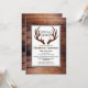 Deep dark and rustic barn wood planks design with dark brown deer antler silhouette and your custom invitation information in brown and black text. These are a great fit to any country, elegant, and rustic wedding!