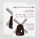A simple rustic country wedding invitation with a dutch style windmill at the bottom of the invitation. The back of the invitation also has the Netherlands style windmill design. These invitations are perfect for an outdoor country style wedding or any wedding held at a windmill wedding venue.