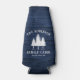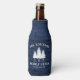 Personalise your country home with beautiful, rustic themed, bottle coolers, featuring your name and "Family Cabin", Ranch, Cottage or other text along with its established date and location if desired. This custom, unique design features rustic country style text with a white silhouette of pine trees on a print of wood planks in rich blue colours. To see more designs like this, feel free to visit my store here at "Zazzle.com/Rustic_Charm". Thanks.