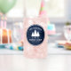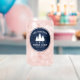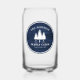 Stylish, country rustic themed, can shaped Glasses, featuring your name and "Family Cabin", Ranch, Cottage or other text along with its established date and location if desired. This custom, unique design features rustic country style text with a white silhouette of pine trees on a rich, blue coloured, print of wood planks. To see more designs like this, feel free to visit my store here at "Zazzle.com/Rustic_Charm"