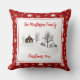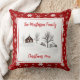 Add your Family Name to this Rustic Country Style Throw Pillow, designed with a Winter Farm scene on a white background. The front border and reverse side are red with white snowflakes. Text includes the word: Christmas, and the year in a bright red colour. To personalise, simply insert your family name, along with the text: Christmas with the current year, using our easy template, and replacing the sample text. Makes a great gift for Christmas.