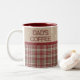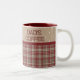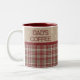 This rustic country farmhouse coffee mug is the perfect addition to your holiday kitchen decor. The top part has a tan lattice work pattern and the bottom is a pretty cranberry, white and tan plaid. A cranberry red faux grossgrain ribbon separates the patterns. The top is monogrammed with "DAD'S COFFEE", or you can personalize it with the specific person that it's for. There are other coordinating items in our shop too, so be sure to look at the entire collection. This will make a fun addition to your kitchen decor during the holidays.