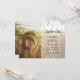 This Save the Date wedding announcement features a fence post with a rustic horseshoe in a charming country farm setting.