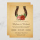 Amaze your guests with this elegant wedding invitation featuring a beautiful vintage horseshoe decorated with vintage flowers against a rustic parchment background. Simply add your event details on this easy-to-use template to make it a one-of-a-kind invitation.