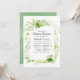 Long distance virtual baby or bridal shower invitation featuring ferns, wildflowers and strawberries and a sage green watercolor wash background.