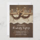 Brown Rustic and country bridal shower invitations with horseshoes couple, vintage lace, barn wood and baby's breath flowers