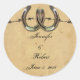 This beautiful and elegant design, called Rustic Country Horseshoes and Barbed Wire on Parchment Wedding, has a beautiful background made from an image of barn wood. There is an inset of old parchment with a cool frame for your text and four old fashioned corner embellishments. At the top is a strand of barbed wire and a pair of lucky horseshoes. This would be perfect for your rustic, country, or outdoor wedding or event! This set has invitations, save the date cards, response cards, thank you cards, table number tent cards, envelope seals, wine labels, binders, return address labels and many more day-of wedding stationery pieces, favours, and gifts available. Use the envelope seal stickers for any of your DIY gifts - these are available in both large and small sizes! All elements are printed on our high quality products, they do not include any real gold, jewels, embossing, or other textile elements. All designs are copyright Noteable Expressions, Inc. All rights reserved.