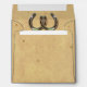 This beautiful and elegant design, called Rustic Country Horseshoes and Barbed Wire on Parchment Wedding, has a beautiful background made from an image of barn wood. There is an inset of old parchment with a cool frame for your text and four old fashioned corner embellishments. At the top is a strand of barbed wire and a pair of lucky horseshoes. This would be perfect for your rustic, country, or outdoor wedding or event! This set has invitations, save the date cards, response cards, thank you cards, table number tent cards, envelope seals, wine labels, binders, return address labels and many more day-of wedding stationery pieces, favours, and gifts available. Use the envelope seal stickers for any of your DIY gifts - these are available in both large and small sizes! All elements are printed on our high quality products, they do not include any real gold, jewels, embossing, or other textile elements. All designs are copyright Noteable Expressions, Inc. All rights reserved.