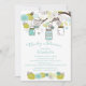 Modern & trendy mason jar baby shower invitation featuring a tree branch with pretty blue, chartreuse green & brown floral flowers and popular rustic hanging mason jars. One jar has "it's a boy" printed on it. Visit our shop to view our beautiful selection of mason jar invitations for a girls baby shower, boys baby shower or gender neutral baby shower.