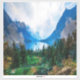 A vinyl decal with a beautiful photograph of a pleasant and tranquil nature scene. Vibrant green forest in the front and shadowy blue mountains in the back. With a dreamy cloudy white sky. Misty and magical feel.