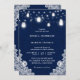 Rustic Country Navy Blue Mason Jar Lights Wedding Invitation