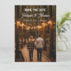 A warm and cosy rustic Save the Date design featuring a couple walking hand-in-hand along a wooden pathway surrounded by nature. Ideal for barn weddings, countryside ceremonies, fall weddings, and outdoor-loving couples.