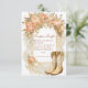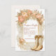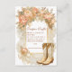 A rustic chic baby shower design featuring cowgirl boots accented with blush pink peonies, soft greenery, and shimmering gold details. Perfect for a western-themed celebration with a feminine floral twist.
