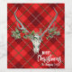 Fun and festive, these stickers are the perfect way to add some additional flair to your holiday party or send guests home with a great bottle of wine or bear. The design features a reindeer skull with red and green garland and the text "merry Christmas" and "the Andersons 20XX," which can be changed to fit your gift giving needs, over a red plaid patterns.