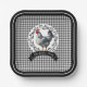 Rustic Country Rooster Chicken BW Gingham Checks Paper Plate