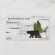 This rustic country business card design features a silhouette bear standing with pine trees and country decor set against a faux birch tree bark background.