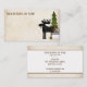 This rustic country business card design features a silhouette moose standing with a pine tree and country decor.