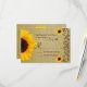 It features a rustic vintage printed burlap background with an ornate floral scroll print with two small sunflowers on either end. It has a large bright yellow sunflower on the other end of the invitation. Perfect for any country or barn wedding. Just add your RSVP date to the card. The burlap is just a printed design. It is not actual burlap fabric.