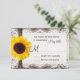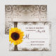 This rustic wedding invitation is perfect for any country wedding. It features a rustic printed distressed swirl background with printed lace and a ribbon of twine on the side with a bright yellow sunflower. Perfect for a country or barn wedding. Just add your RSVP date to the card. The burlap, twine, and lace are just printed designs. It is not actual lace or twine.