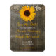 Rustic Country Sunflower Save the Date Magnets. Country rustic barn wood planks background, golden yellow sunflowers, and burlap lace with faux metal embellishments on top.
