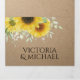 Rustic Kraft Paper Watercolor Sunflower Wedding all in one Tri-fold invitations that come with response cards RSVP, Details and info and a photo of the couple. Features bouquets of yellow sunflowers on a faux kraft paper background. Perfect for an outdoor, boho, country or nature wedding!