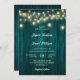 Rustic Country Teal Wood String Lights Wedding Invitation
