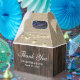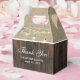 Rustic wedding thank you favour box featuring burlap, rustic wood and string lights. These rustic textured wedding favour boxes are perfect for a rustic country wedding party. Easily personalise our wedding favour boxes with your event details. These thank you favour boxes can be easily personalised to other occasions, such as rustic bridal showers.