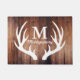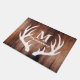 Step on up to farm chic! This deep, rich, rustic brown wooden barn planks doormat has a crisp white deer antlers silhouette and your personalised family name and monogram letter. Finish off your farmhouse with this great doormat to greet your guests.