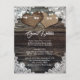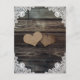 Provide your guests with important details with this rustic country wedding enclosure card featuring burlap hearts on a barn wood background adorned with elegant white floral lace and string lights. Two burlap hearts and floral lace at the back. Matching items available.