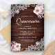 Rustic Country Wood Lace Pink Floral Quinceanera Invitation