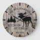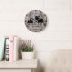 A rustic, unique, one-of-a-kind personalised design features a faux wood background with pine trees, a moose and the words, "THE WILLIAMSONS LIVING ON MOUNTAIN TIME EST. 20XX" in black typography. Personalise this clock by adding your own personal information. Makes a great wedding, anniversary, or housewarming gift. Click "personalise this template" to change the names and fonts to create a unique one of a kind design. What a nice accessory for your living room, bedroom, or family room. If you need any help with customisation please email me at ybnormalone @gmail.com. Thanks for stopping by www.zazzle.com/WhisperingPines. ©Karen HallA rustic