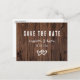 Custom rustic country wedding save the date postcards featuring a barn wood background. Easily personalise these rustic textured wedding save the date postcards with your wedding details.