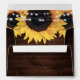 Custom rustic sunflower envelopes with a return address featuring sunflower flowers, wood and string lights. Matching items available.