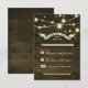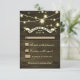 RUSTIC COUNTRY WEDDING RSVP cards with distressed wood background, sparkling string lights and stylish typography with a banner.