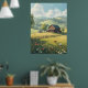Bring a touch of quiet country life into your home with this charming summer landscape artwork. The scene features a cozy wooden cabin nestled in rolling golden hills, surrounded by lush forests and bright wildflowers swaying in the breeze. Chickens roam freely in the sunlit meadow, adding warmth and life to the peaceful setting.