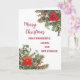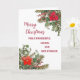 Merry Christmas for cousin and her husband card in rustic watercolor poinsettias and foliage.