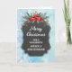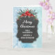 Merry Christmas for cousin and her husband card with rustic country chalkboard pattern and winter foliage with poinsettias.