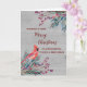 Merry Christmas for cousin and her family card with rustic watercolor greenery and cardinal and vintage wood pattern.