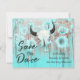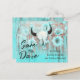 Rustic cow skull boho sunflowers western teal brown wedding budget save the date announcement flat card. Rodeo cowboy bull skull with horns country floral texture. Barn wood vintage bohemian farmhouse cowgirl style design. Image copyright Marg Seregelyi Photography.