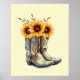 A poster with a cute illustration featuring cowboy books filled with sunflowers. Original image painted with watercolors.
