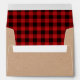 Rustic look Christmas card envelope done in a craft paper look, on the outside, and a red and black buffalo plaid pattern, on the inside. Personalise the black custom return address, on the back flap, to suit your needs. Matching holiday greeting cards are available.