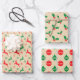 This rustic old fashioned looking wrapping paper comes as a set of 3. One is red and green snowflakes and reindeers, one has holly leaves and red berries and one has antique Christmas ornaments.