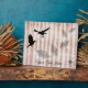 also has 2 crows aloft and black feathers floating and a dandelion dispersing in the wind