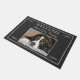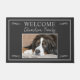 Modern rustic dark grey doormat with photo template, family name and Welcome script.