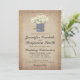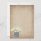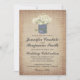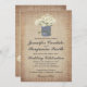 Rustic Country Daisy Flower Wedding Invitations with a bouquet of daisy flowers in a tin can with intertwined double hearts on the can. The background is a burlap jute printed design. Two Sided. The back of the wedding announcement also has the floral arrangement design on it. This cute whimsical wedding invitation is perfect for a rustic country wedding.