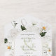 AVAILABLE WITH OR WITHOUT A QR CODE TO SCAN IN THE RSVP AREA. This design features a soft frame of daisies, white flowers, and greenery. Add a QR code to your invitation so that gusts can quickly access your wedding Website for details, directions, menu options, and more, or add your gift registry Web URL. Personalised All-In-One invitations are a unique combination of both a beautifully printed custom invitation with an easy to tear off perforated RSVP postcard. And they are so easy to use! You simply fold, then seal the back flap with the three included clear stickers, and mail. And when your guests receive your custom invite, they just tear the perforated RSVP Card off and drop it back in the mail to you!