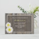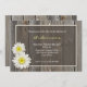 Rustic bridal shower invitation with white daisies on a weathered barn wood background.