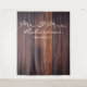 Rustic Dark Brown Wood Planks background, with elegant script typography for personalised Mr. and Mrs. family name; combined with serif typography for customisable since date. It is a timeless design made specifically for a rustic wedding, or anniversary celebration.
