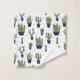 Bath towels with a rustic western flavour. Designed with a bunch of cute green cactuses in a repeating pattern. Specifically, green coloured prickly cactus, in all kinds of shapes and sizes, each sitting in its own dark blue flower pot. Little decorative triangles in between them. Whimsical fun illustration.